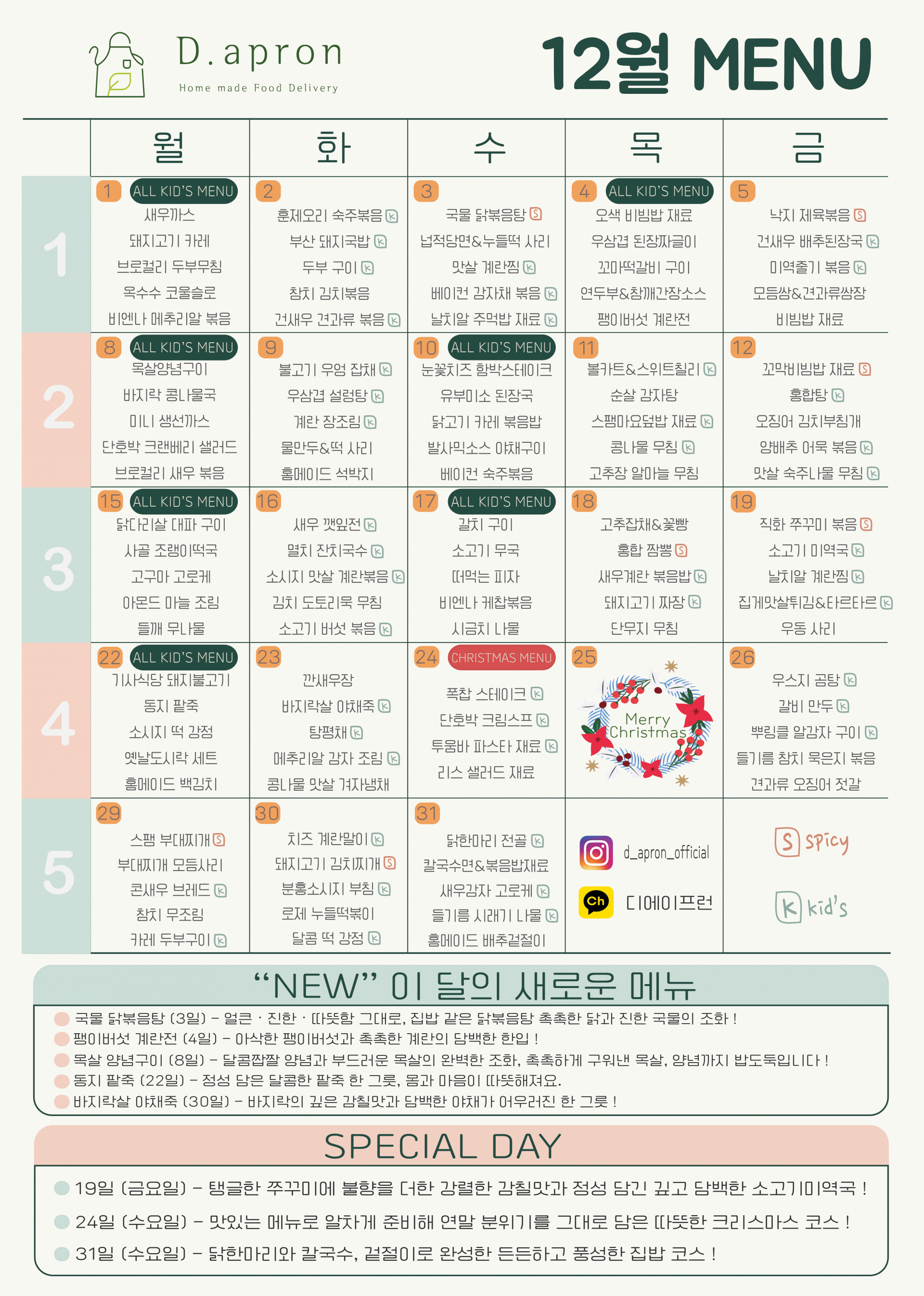 단품 추가 구매는 "월간 메뉴"에서 주문 하신 날짜에 한해서 가능합니다.